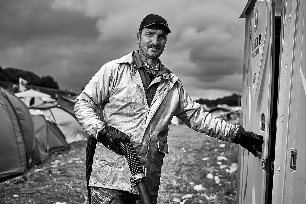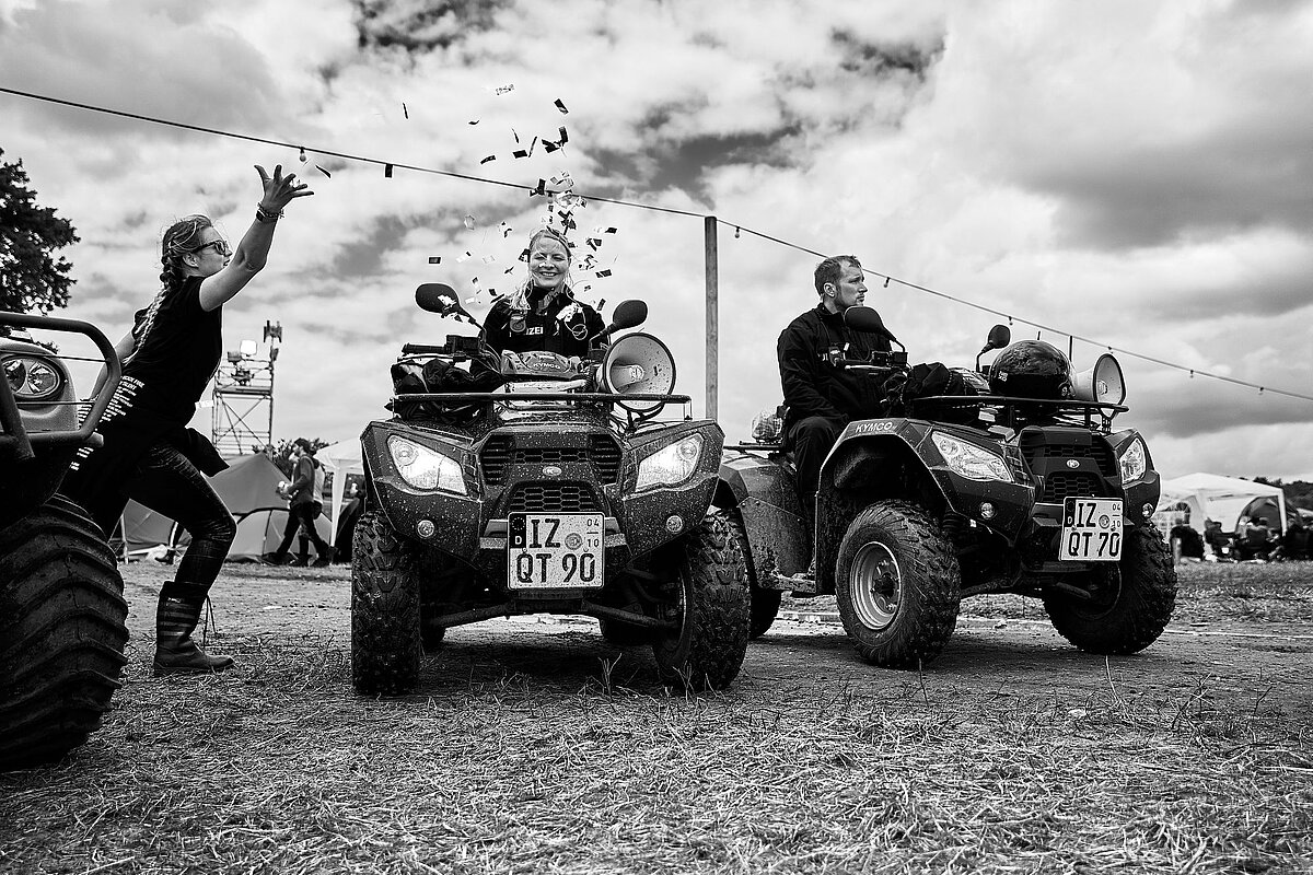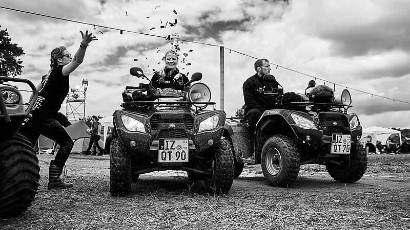 Quads, Klos und Konfetti: Mikes Bilder zeigen ausdrucksstarke Szenen und Menschen, die Besucher sonst selten zu Gesicht bekommen. Der gebürtige Scheeßeler, der heute als Fotograf, Kameramann und Regisseur in Hamburg lebt und arbeitet, kennt das Hurricane als Besucher schon seit Jahren. Dass er einen guten Draht zum Festival und seinen Helfern hat, sieht man seinen Bildern an: Ruhig und würdevoll zeigen die Schwarz-Weiß-Portraits unterschiedlichste Menschen aus der Region bei ihrer Arbeit. Und wer auch nur ein paar dieser Bilder anschaut, bekommt sofort ein Gefühl dafür, wie viele wichtige Arbeiten eine Großveranstaltung dieses Ausmaßes bedeutet, an die die meisten Besucher nicht mal gedacht haben (ein paar Bilder befinden sich am Ende des Artikels).