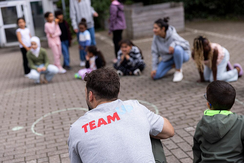 Mit Spiel und Spaß für mentale Gesundheit: eine TeamUp-Session in einer Unterkunft für Geflüchtete in Hamburg. (War Child Deutschland / Andreas Hornoff)