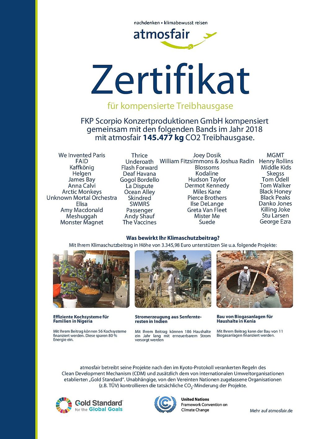 Musik macht unsere Welt genauso lebenswert wie sauberes Wasser und klare Luft - aber darf sie das um jeden Preis? Wir finden nicht. Aus diesem Grund arbeiten wir daran, unseren CO2-Ausstoß in all unseren Geschäftsbereichen zu verringern. Nachdem auf Festivals bereits seit einigen Jahren das "Grün Rockt"-Programm erfolgreich läuft, gehen wir nun auch im Tourneesektor und bei Dienstreisen weitere Schritte in diese Richtung. Wir stehen damit erst am Anfang einer langen Entwicklung und schreiben nicht darüber, um uns selbst zu loben - sondern weil uns als Unternehmen dieses Thema wichtig ist und wir als großer Akteur in der Branche eine besondere Verantwortung spüren.