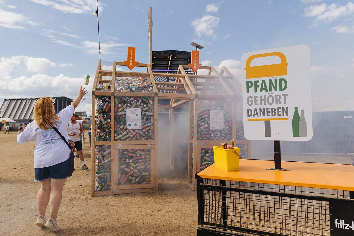Unsere Becher sind nicht die einzigen Trinkgefäße, die wir zu Geld zu machen. Unsere Gäste bringen jedes Jahr viele Dosen und Flaschen mit, deren Abgabe, sagen wir, nicht unbedingt ganz oben auf ihrer Festival-To-Do-Liste steht. Daher bieten wir durch auffällige Abgabestellen die Chance, etwas Gutes zu tun – und zwar ökologisch und monetär, denn eigentlich wiederverwendbare Pfandgefäße werden nicht nur zu Geld, sondern sparen eine Menge Ressourcen. Daher arbeiten wir mit tollen Partnern wie „Hanseatic Help“ und „Pfand gehört daneben“ zusammen, um mit den Pfand-Erlösen direkt verschiedene Projekte in der Obdachlosenhilfe zu unterstützen. 2024 sind dafür mehr als 48.000 Euro zusammengekommen.