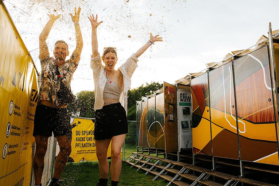 Auf dem Gelände verteilt gibt es außerdem wassergespülte, barrierefreie Toiletten. Diese sind speziell gekennzeichnet und mit Handwaschbecken, Desinfektionsmittel und Beleuchtung ausgestattet.