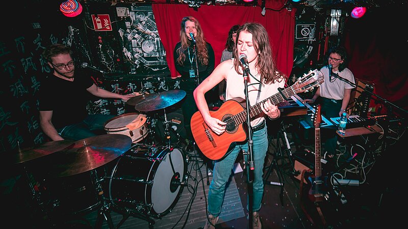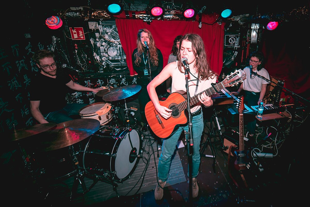 Laurin: Genau, da wäre beispielsweise der farbenprächtige Elektro-Pop von Anna-Rose Clayton oder der rifflastige Rock von Ramkot. Der Abend im Molotow wird eine musikalische Reise durch verschiedene Genres. Wir empfehlen, sich einfach unvoreingenommen treiben zu lassen und die unterschiedlichen Eindrücke zu genießen. Mit offenen Ohren entdeckt man die nächste Lieblingsband am besten!