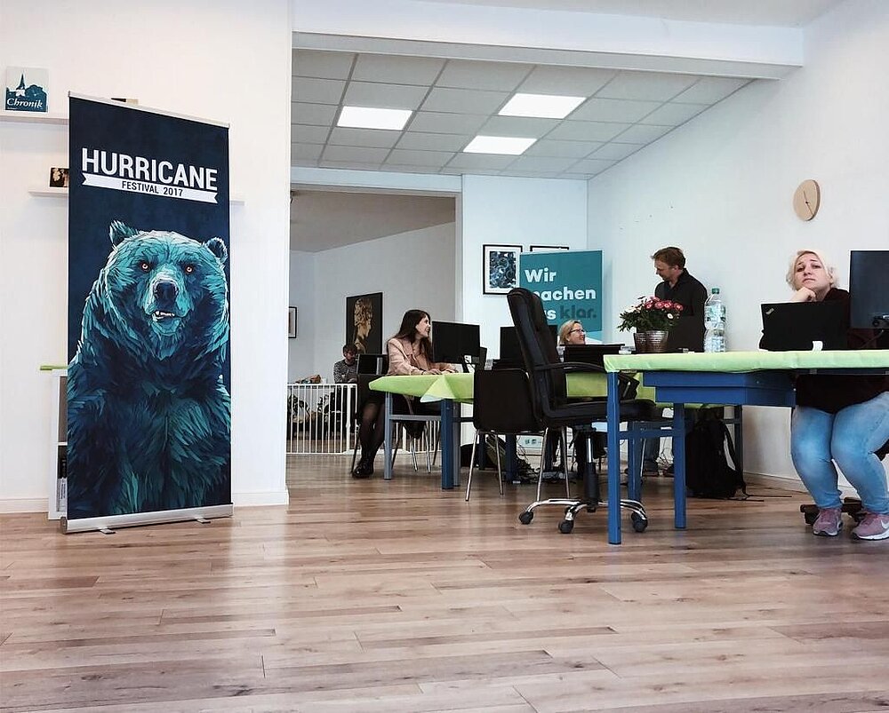 Wir sind vom 27. Mai bis 14. Juni mit einer Art mobiler Geschäftsstelle in den Räumlichkeiten der Werbeagentur Klar in der Großen Straße 9 präsent. Das heißt zum einen, dass Mitglieder unseres Festivalteams in dieser Zeit von 12.30 bis 18 Uhr von dort aus arbeiten, damit wir für möglichst viele Menschen nicht einfach „FKP Scorpio“ sind, sondern ein oder besser gesagt viele Gesichter bekommen. Für Anregungen oder Fragen haben wir sowieso ein offenes Ohr. Wir laden alle Anwohner herzlich dazu ein, einfach mal auf einen Kaffee vorbeizuschauen, die Kollegen freuen sich über Besuch und gute Gespräche. Im Hurricane Festival Store sind Tickets während der Öffnungszeiten übrigens mit einem exklusiven Rabatt für Besucher aus der Region zu haben.