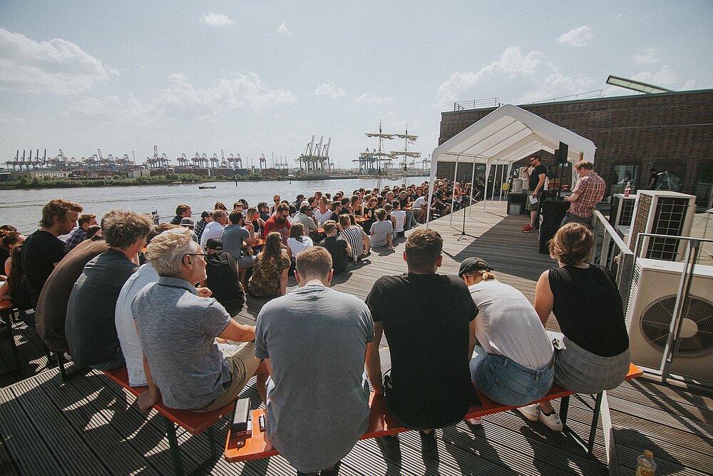 Wir haben ziemlich strukturiert begonnen und uns durch verschiedene Modelle gearbeitet. Im Zentrum standen Gespräche mit unseren CEOs Folkert und Stephan, mit denen wir alle Ideen und Aspekte gesammelt haben, die Folkert vor fast 30 Jahren bei der Gründung von FKP Scorpio wichtig waren. Damit wir sicher sein konnten, dass schon die ersten Entwürfe für uns alle sprechen, haben wir das gesamte Team gefragt, welche Werte sie mit dem Unternehmen verbinden. Zeitgleich haben wir eine weitere, größer angelegte Befragung zur Firmenidentität gestartet. Mit beidem haben wir sichergestellt, dass jede und jeder im Team eingebunden wurde. Die schöne Erkenntnis daraus: Wie es aussieht, waren die Werte der Geschäftsführung und der Mitarbeiter schon fast deckungsgleich.
