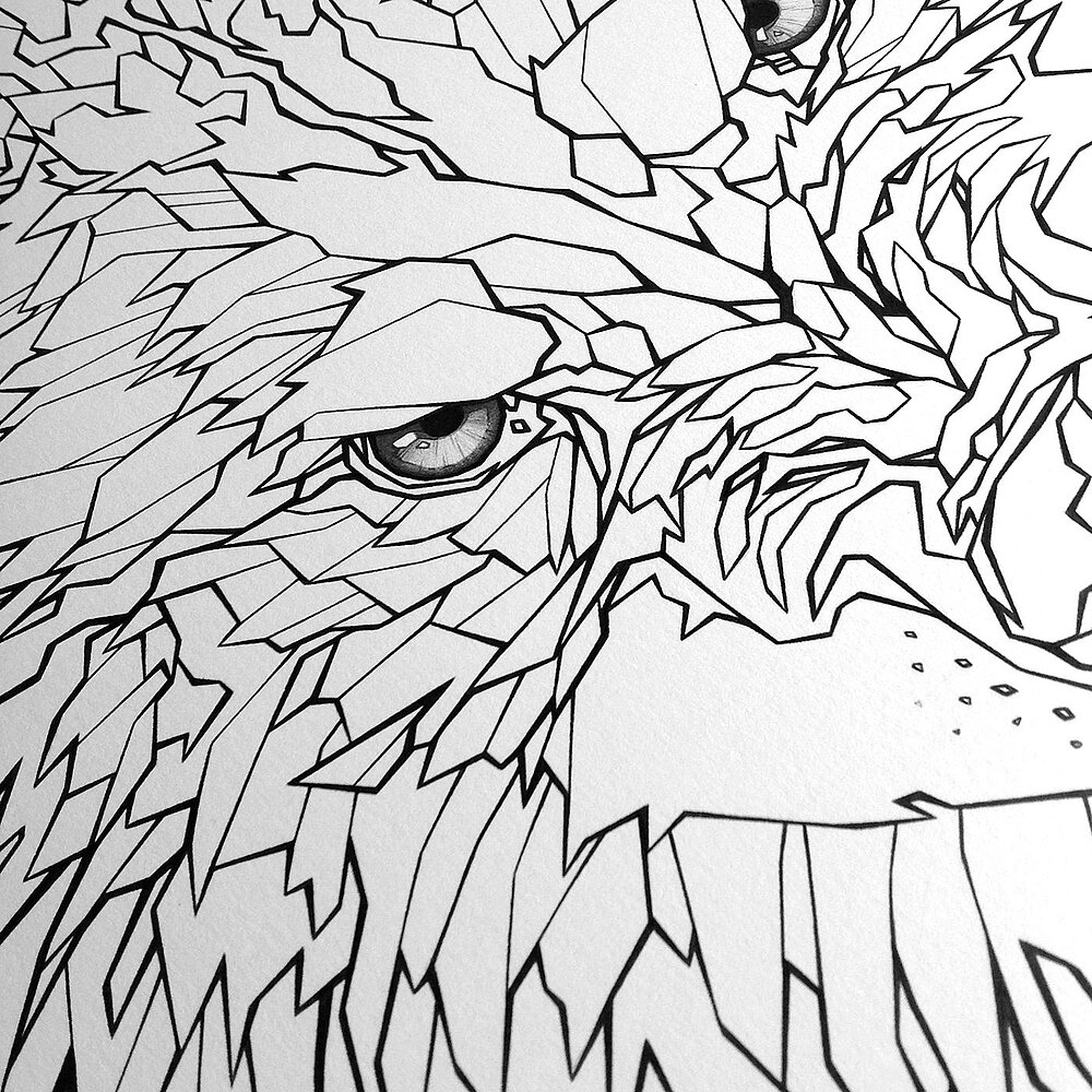 Before the FKP commission for the fest, I was playing around with this "geometric style" idea for a long time. In some way, it was always my natural way of drawing. But with these animals everything exploded, and now I think I'm known for this geometric style. Regarding the process. With the first animals I was doing everything by hand, except the color treatment. I mean, it was a full graphite drawing with lines, gradients and so on, adjusted and colored in Photoshop. Later, I started doing only the line by hand, and everything else was made digitally. The last ones are completely made in the computer.