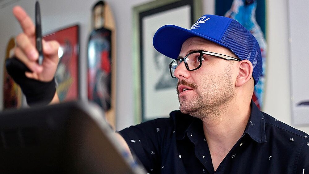 "I like it! What is it?" This reaction to the animal artworks of people from abroad who may never have heard about Hurricane or Southside Festival is the best thing that can happen to a brand. The wolf, lynx, bear or owl that have become an integral part of the festivals' identity all speak for themselves. Of course, all fans have always been curious about the person behind those designs. Meet Dani Blázquez, the man who created all of the festivals' furry or feathery faces.